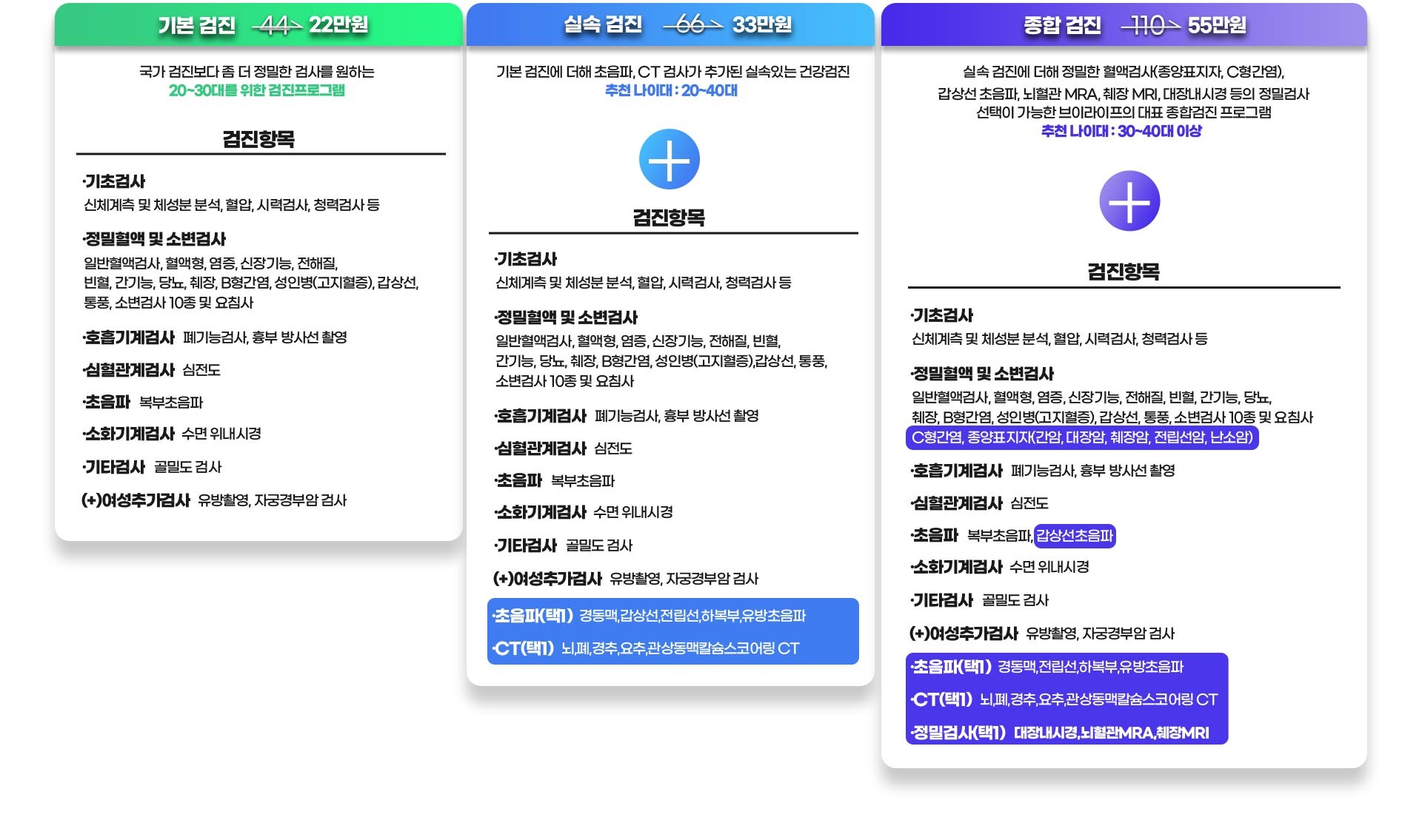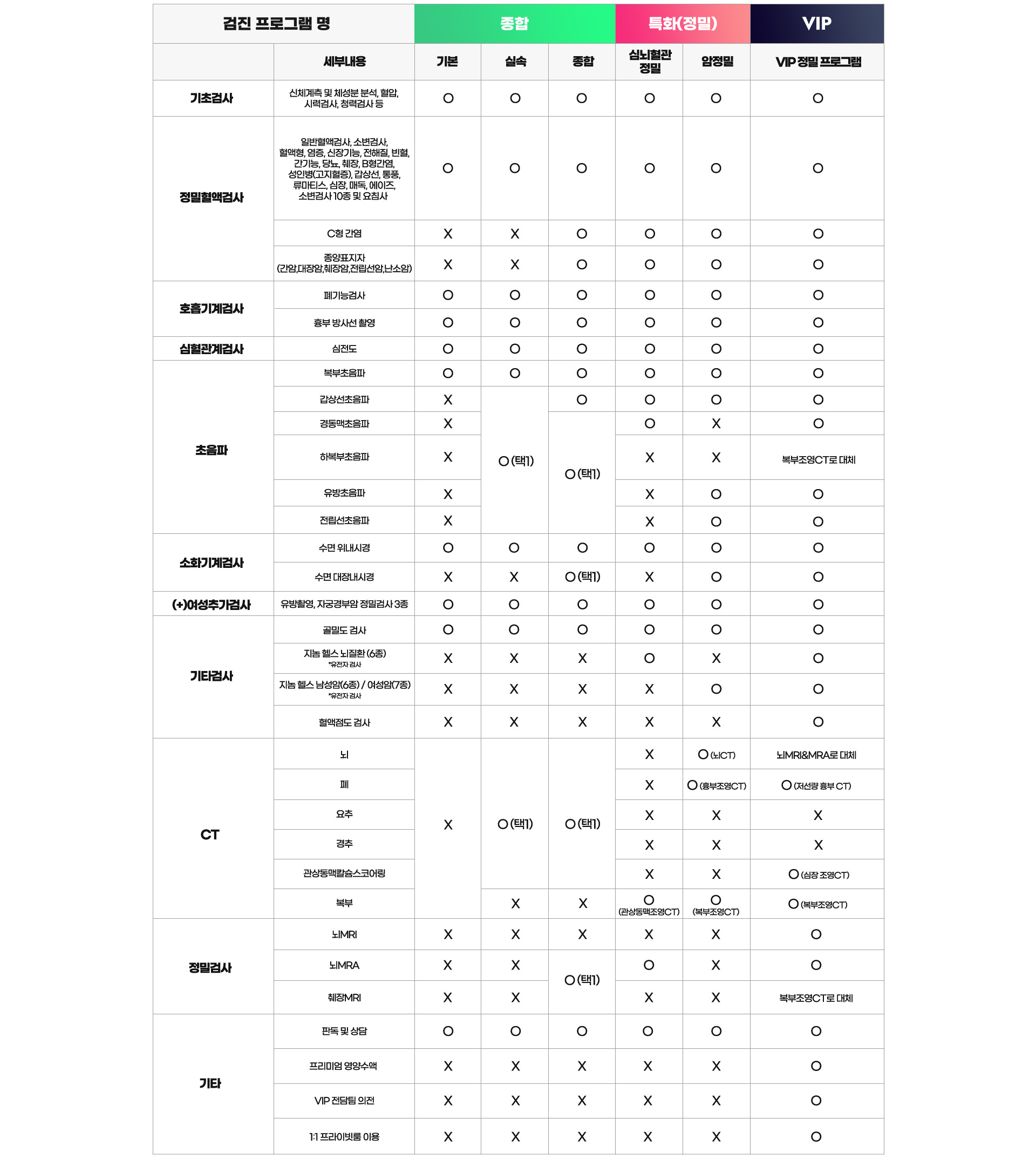 | 프로그램 정보 | 프로그램별 검진 항목 |